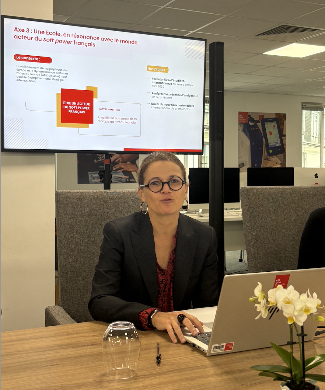 « emlyon UK ». De 33% d’étudiants internationaux aujourd’hui, emlyon entend passer à 50% en 2030. Aujourd’hui actionnaire minoritaire de la London Interdisciplinary School, emlyon entend monter en puissance pour créer à moyen terme « emlyon UK ». En Afrique l’école a un bureau à Abidjan pour recruter des étudiants africains et entend y développer des programmes de formation continue. « Nous regardons avec attention le Moyen Orient dans des pays qui préparent l’après pétrole et dans lesquels nous avons beaucoup à dire sur les transitions. »
