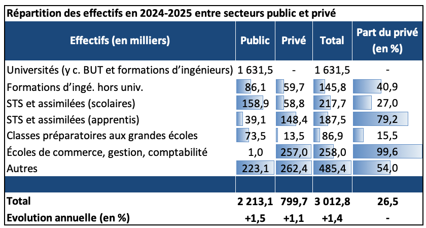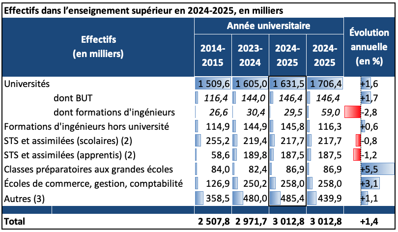 l’enseignement supérieur 2024-2025, ce sont 3,01 millions d’étudiants qui