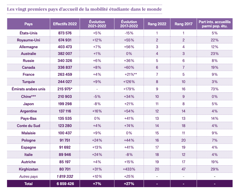 - Les chiffres du SIES sont notablement différents de ceux donnés par Campus France qui sont de 443 500 étudiants internationaux en France. Le SIES ne comptabilise en effet que les étudiants de nationalité étrangère titulaires d’un diplôme d’études secondaires étranger ou d’un baccalauréat français obtenu à l’étranger. Ils correspondent à une population venant suivre des études supérieures en France après une scolarité dans leur pays d’origine. Campus France comptabilise lui tous les étudiants étrangers.