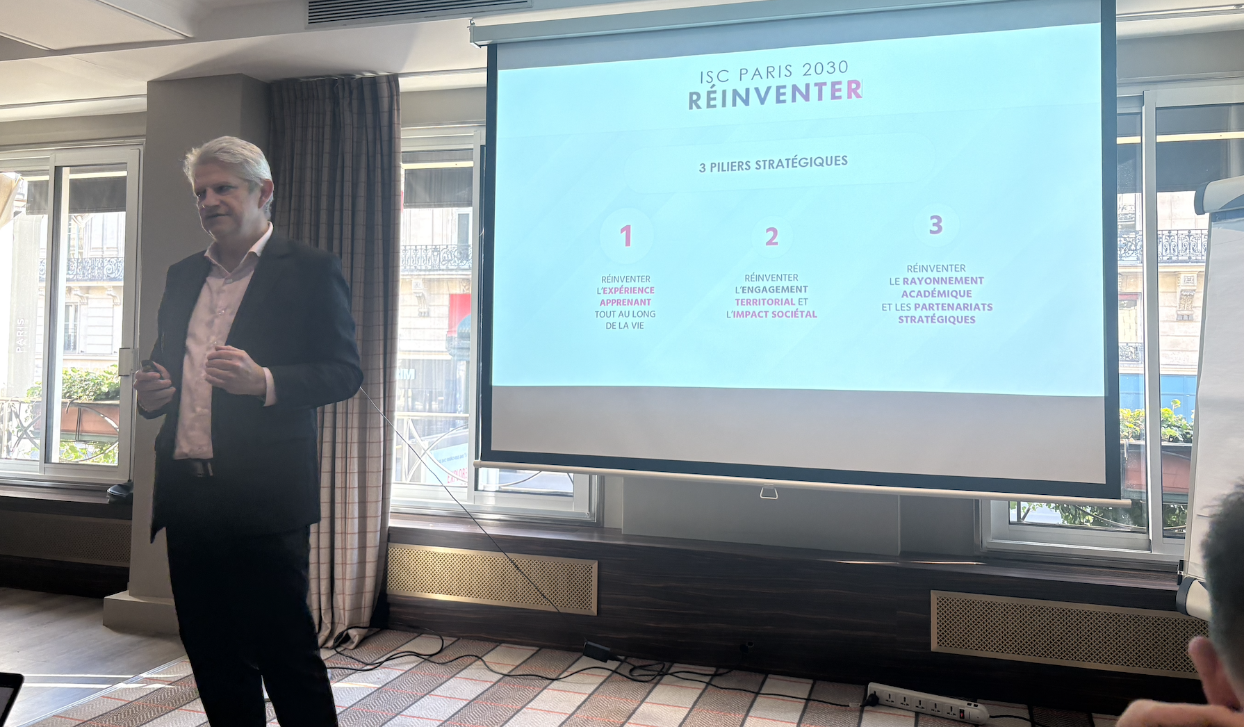 « Nous avons travaillé pendant cinq ans à redorer notre blason en particulier sur les questions de reconnaissance en augmentant nos accréditations qui sont passées à quatre avec AACSB, EFMD master, Amba et BGA que nous sommes la seule école française à avoir obtenue. » En amont de la présentation de son nouveau plan stratégique le directeur général de l’ISC Paris, Jean-Christophe Hauguel fait le bilan d’une action qui l’a notamment permis d’intégrer le top 100 des masters in management du Financial Times, de faire progresser ses effectifs étudiants de 30% et de professeurs permanents de 21% et de redevenir « légèrement excédentaire avec un Ebitda de 3% qu’il entend faire progresser d’un point par an ». Alors que l’école a aujourd’hui 50% d’alternants il imagine que cette proportion de 40% en 2026. Alors que la situation financière des écoles se dégrade, Jean-Christophe Hauguel se félicite d’être à la tête d’une « école indépendante et agile » qui entend aujourd’hui se « réinventer » avec son plan stratégique « ISC Paris 2030 : réinventer » : « Nous entrons dans un monde de plus en plus incertain où il faudra constamment s’adapter alors que les jeunes sont en quête de sens et de passion ».