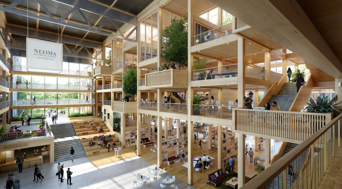Le tout nouveau campus rémois de Neoma ouvrira ses portes en janvier 2027. 4200 étudiants feront alors leur rentrée sur un site de 35 000 m2, qui entend « associer beauté architecturale, qualité de vie et performances énergétiques ».