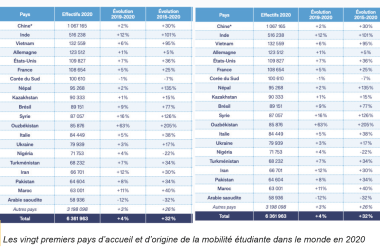 Un « marché » en voie de recomposition. Quatrième pays d’accueil de la mobilité diplômante mondiale avec 325 000 étudiants en 2017, premier pays d’accueil non anglophone, la France voit son rang contesté aussi bien par ses voisins européens (Allemagne, Russie) que par des pôles d’attractivité puissants (Chine, Canada) mais aussi par de nouveaux acteurs très dynamiques (Pays-Bas, Arabie saoudite et Turquie).